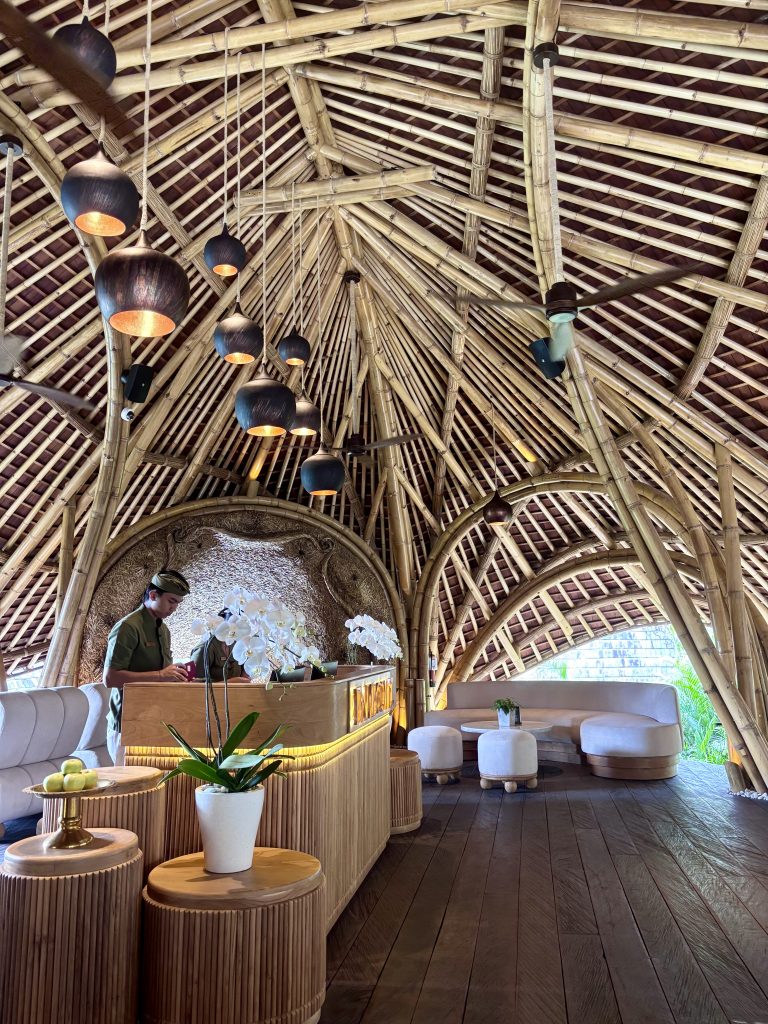 - Gegend Ubud: Traumhotel Bambootel, ein Traum aus Bambus mit atemberaubenden Blick auf die Reisterrassen und Dschungel.