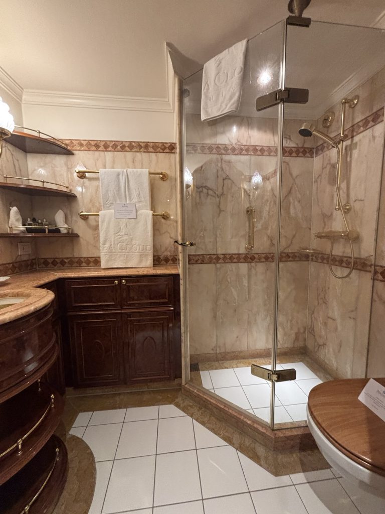 Schon beim ersten Anblick am Hafen stockt der Atem: Die Sea Cloud II liegt majestätisch da, wie wunderschön vermag sie wohl mit gesetzten, weißen SEGELN glänzen? Mit nur 94 Passagieren an Bord bietet sie eine intime Atmosphäre, die man auf großen Kreuzfahrtschiffen kaum findet. Das Interieur ist eine Mischung aus klassischem Yacht-Charme und modernem Komfort – edles Holz, glänzende Messingbeschläge, frische Blumen in den Kabinen.